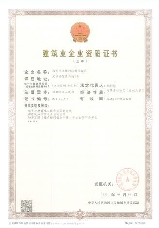 河南省文保科技有限公司成立于2014年,位于河南省焦作市。公司具备消防设施工程专 业承包一级、电子与智能化工程专 业承包一级、特种工程(建筑物纠偏和平移)专 业承包资质。经营范围包括文物保护技术咨询及服务;文物保护工程侦查设计、施工、监理;电子及智能化工程、消防工程、安防工程、特种工程、博物馆陈列展览的设计与施工;文物复制、拓印;文化产品研发、销售;文物保护设备及用品销售。