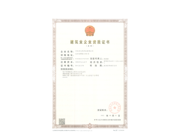 消防设施工程专业承包一级、电子与智能化工程专业承包一级、特种工程(建筑物纠偏和平移)专业承包资质
